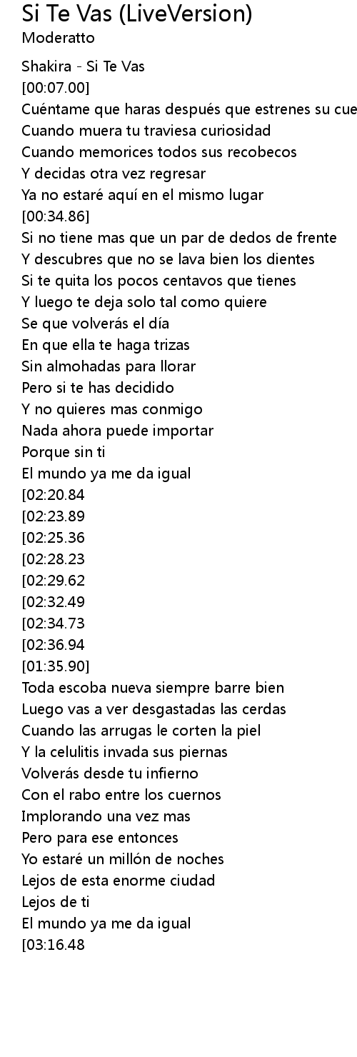 | [00:00.00] | Shakira Si Te Vas |