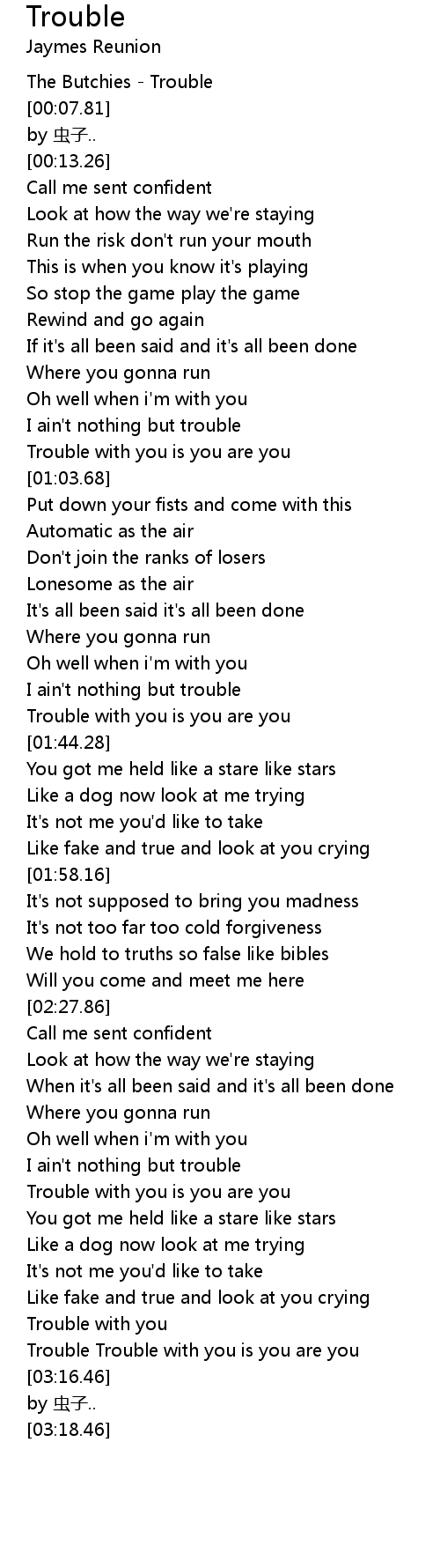 | [01:35.45] | I ain't nothing but trouble |