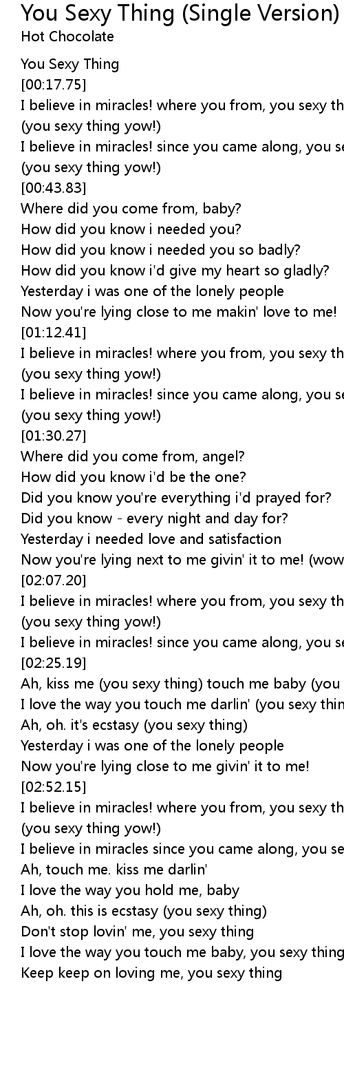 I believe in miracles since you came along, you sexy thing |