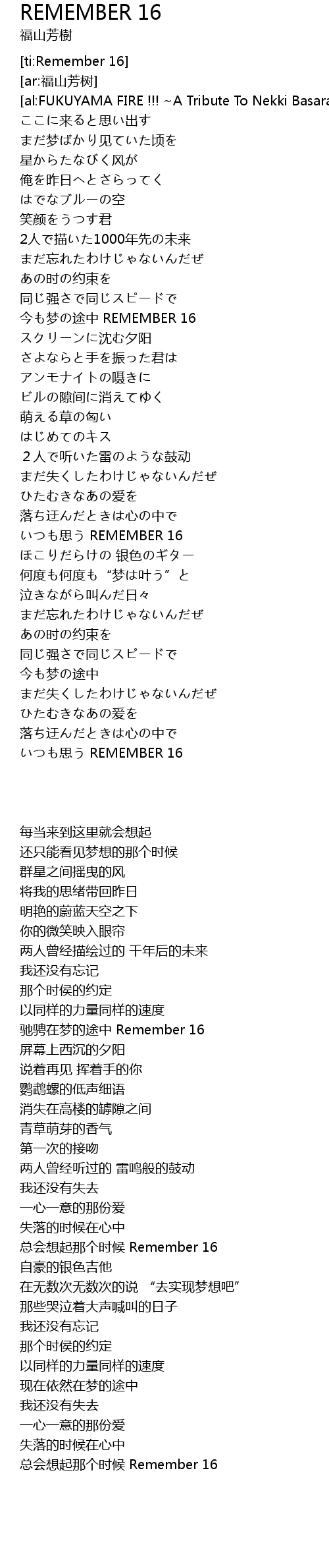 | [04:58.41] | いつも思う REMEMBER 16 |