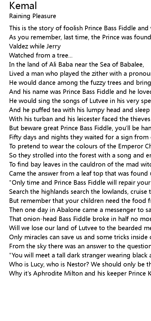 This is the story of foolish Prince Bass Fiddle and wise Jerry Kemal. |
