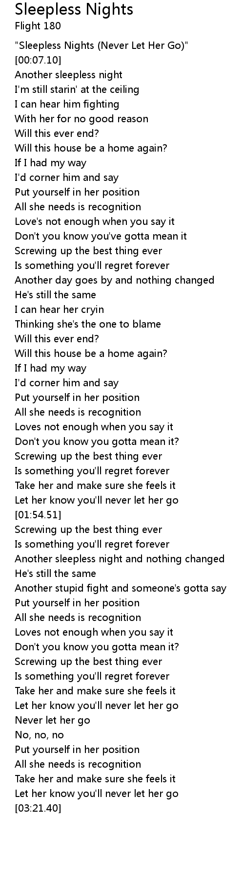 "Sleepless Nights (Never Let Her Go)" |