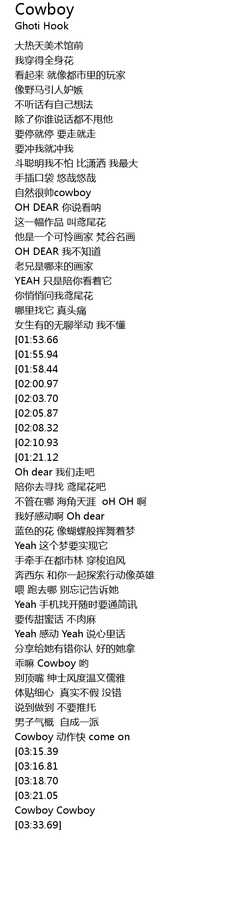 | [03:23.88] | Cowboy Cowboy |