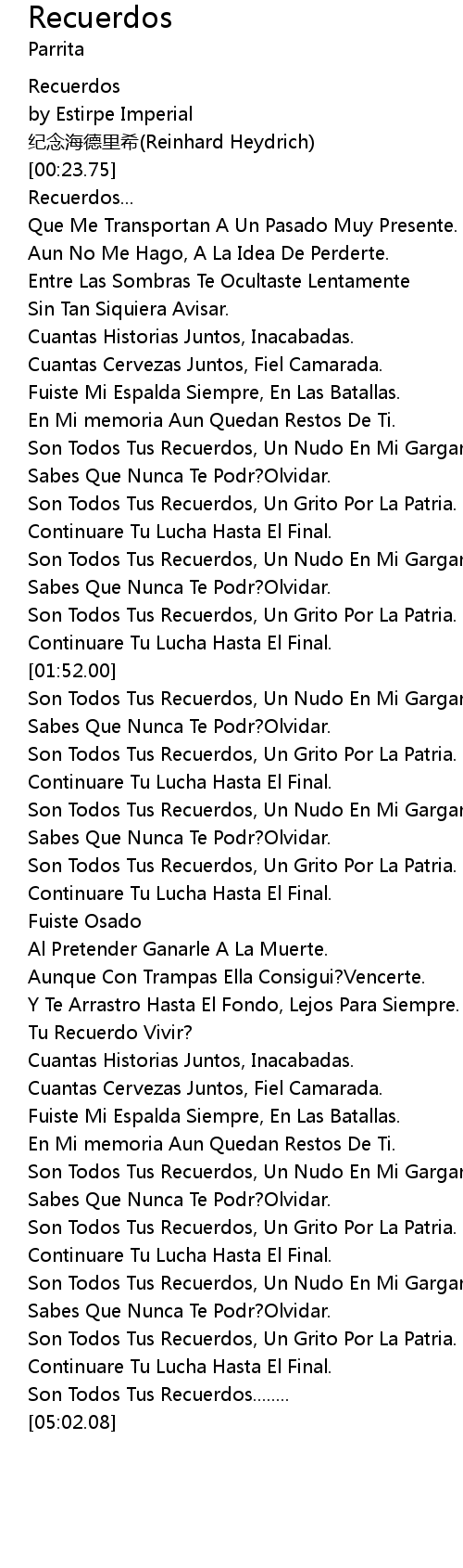 | [02:52.00] | Son Todos Tus Recuerdos, Un Grito Por La Patria. |