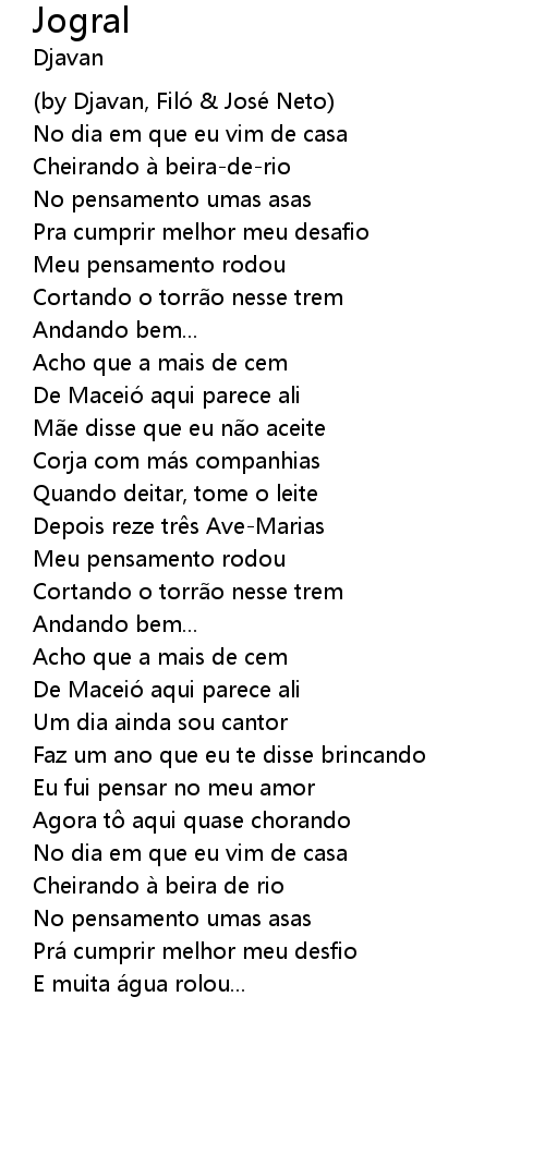 | (by Djavan, Filó & José Neto) | |