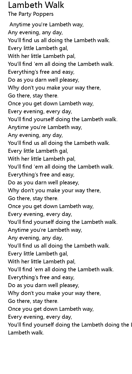 You'll find yourself doing the Lambeth doing the Lambeth doing the Lambeth walk. |