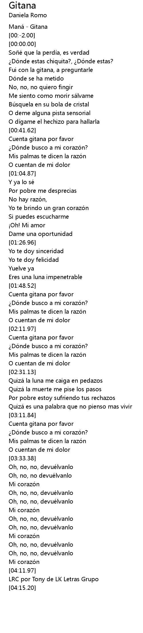 | [00:10.99] | Fui con la gitana, a preguntarle |