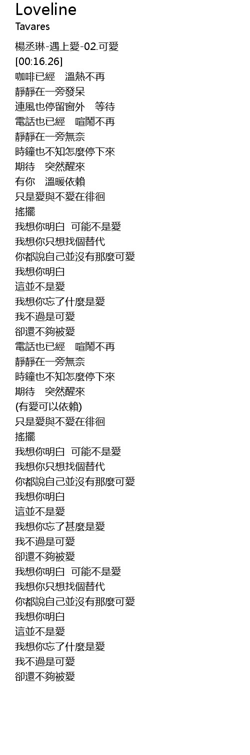 | [00:15.75] | 楊丞琳-遇上愛-02.可愛 |