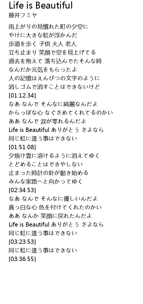 | [01:39.03] | Life is Beautiful ありがとう さよなら |