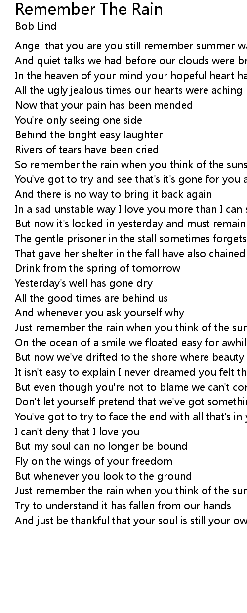 | So remember the rain when you think of the sunshine | |