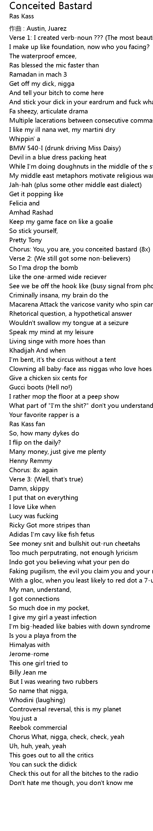 | Chorus: You, you are, you conceited bastard (8x) | |