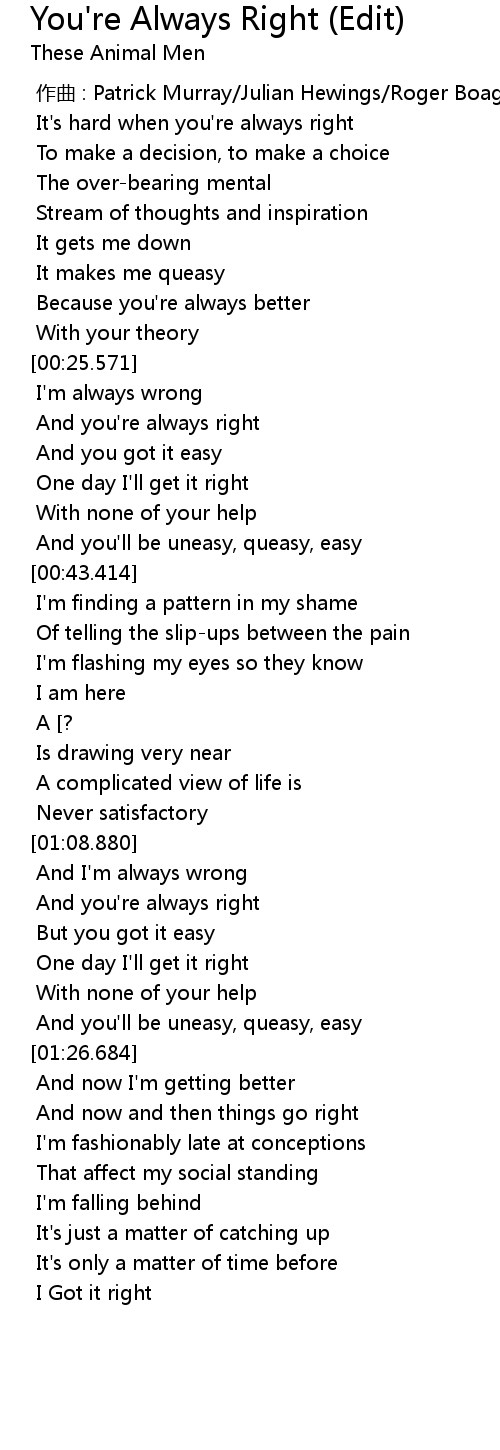| 歌曲 | You're Always Right (Edit) |
