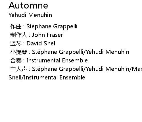 | [00:00.000] | zhu ren sheng : Ste phane Grappelli Yehudi Menuhin Max Harris David Snell Instrumental Ensemble |