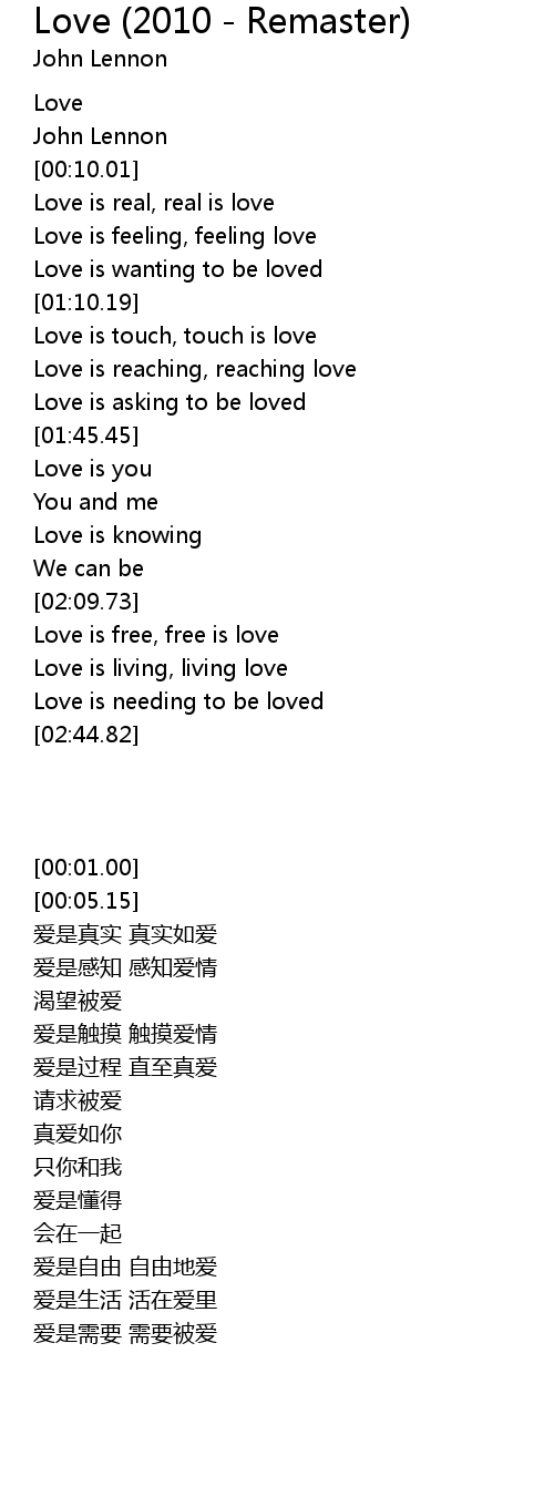 歌曲 Love (2010 - Remaster)
