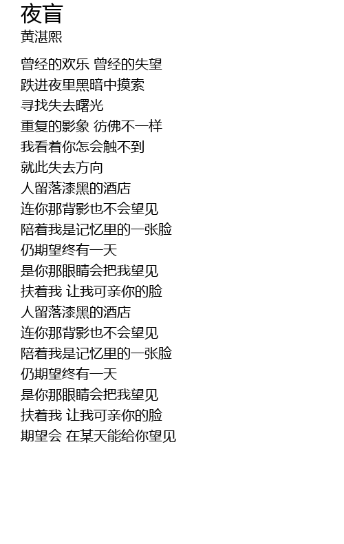 | [00:08.960] | diē jìn yè lǐ hēi àn zhōng mō suǒ |