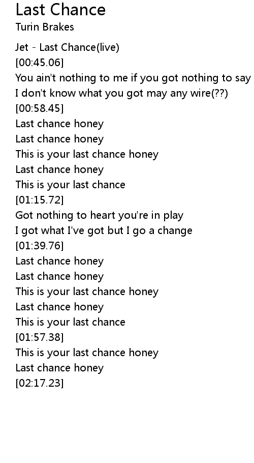 [00:00.00] Jet - Last Chance(live)