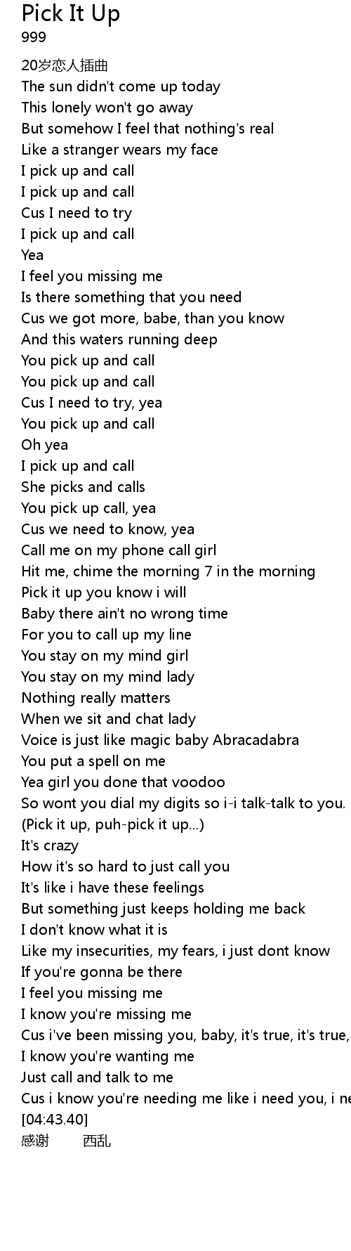 | [00:40.32] | I pick up and call |