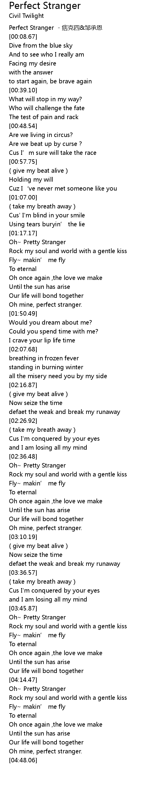 | [00:01.25] | Perfect Stranger pi ke si zou cheng en |