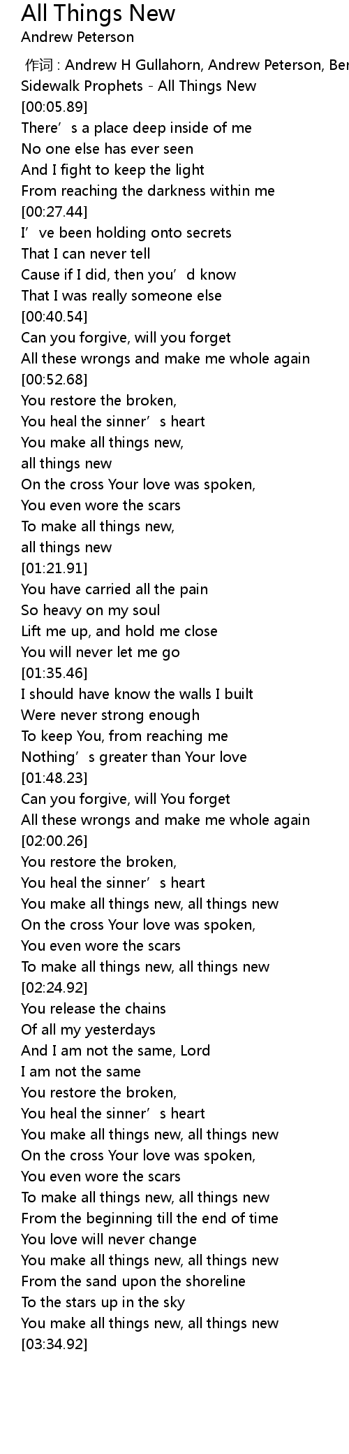 | [03:22.77] | You make all things new, all things new |