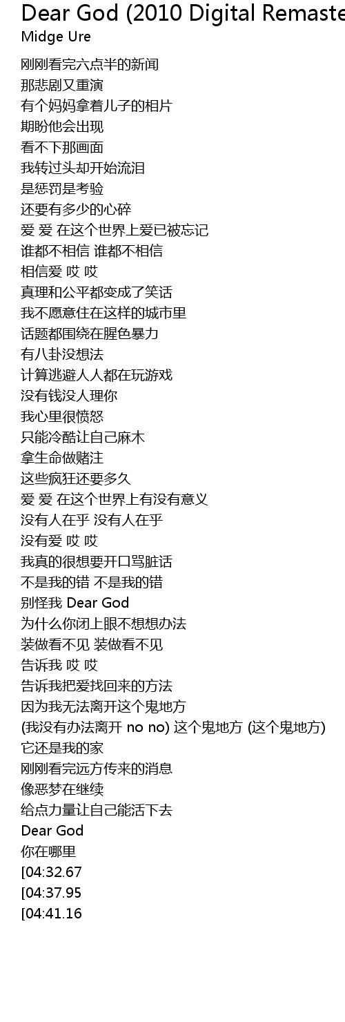 | 歌曲 | Dear God (2010 Digital Remaster) |