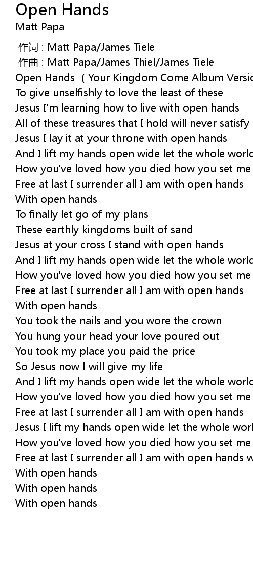| [00:00.483] | Open Hands Your Kingdom Come Album Version Matt Papa |