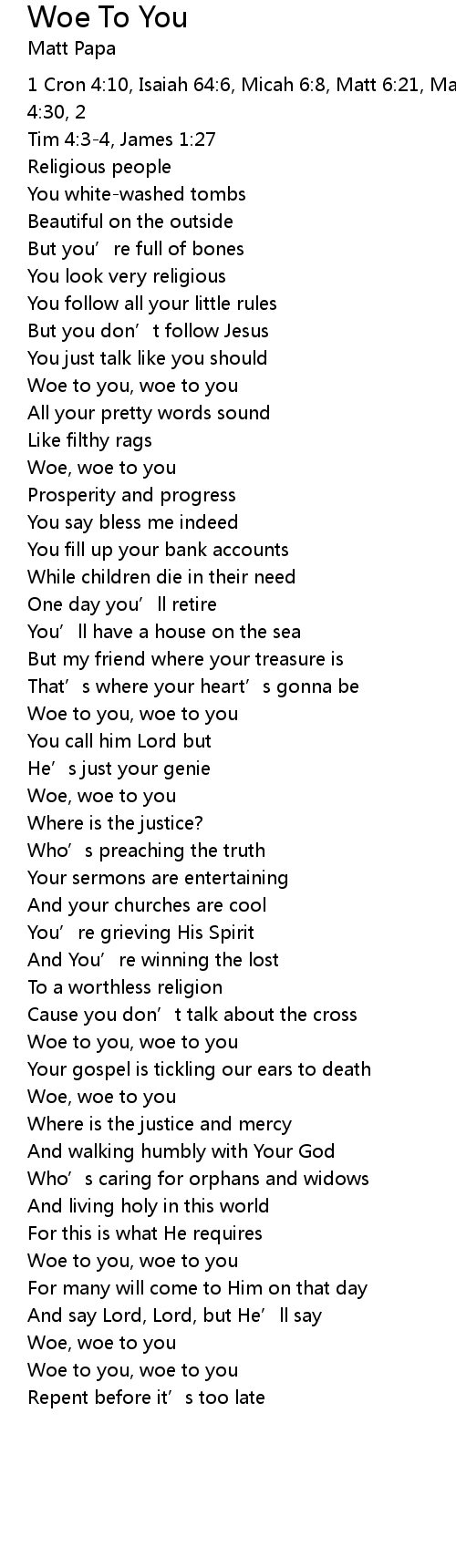 | Woe to you, woe to you | |