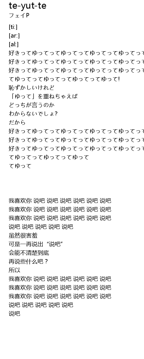 | [00:55.20] | 好きってゆってってゆってってゆってってゆってってゆってってゆってってゆって |