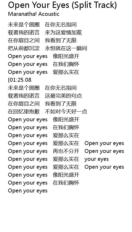 | [03:27.91] | Open your eyes 再也不分开 Open your eyes |