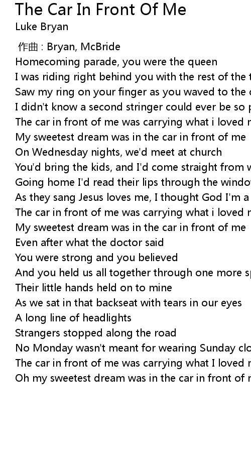 | [01:32.50] | The car in front of me was carrying what i loved more than anything |