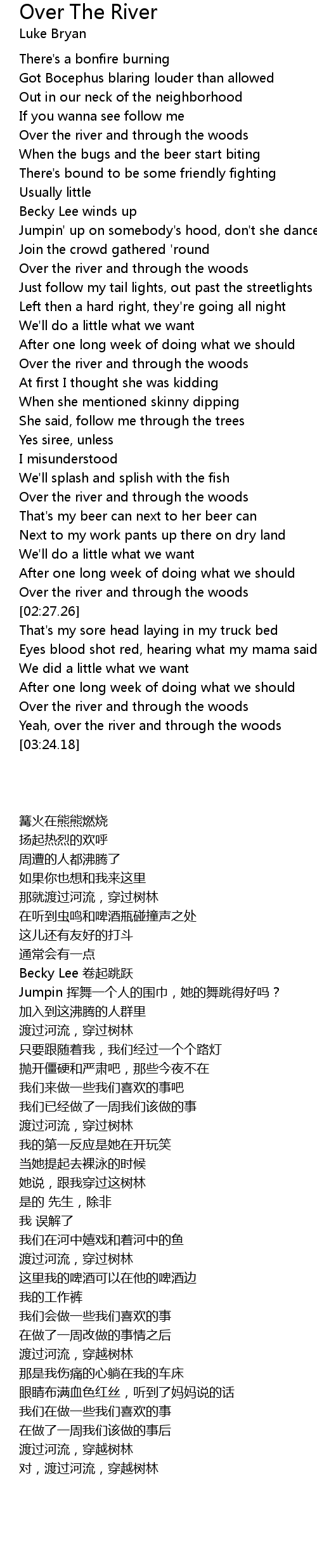 Over the river and through the woods |