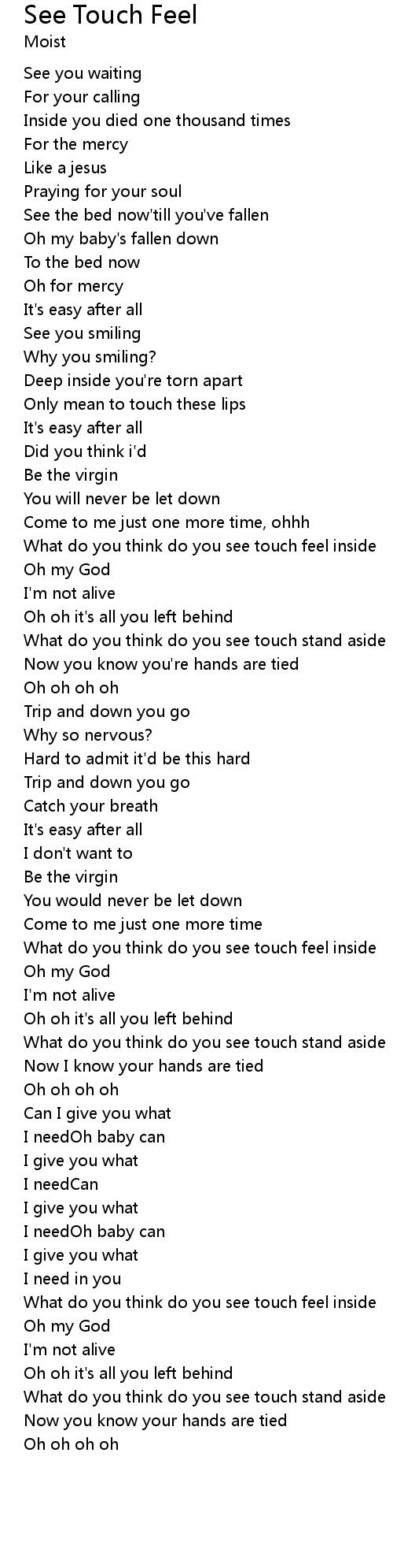 What do you think do you see touch feel inside |