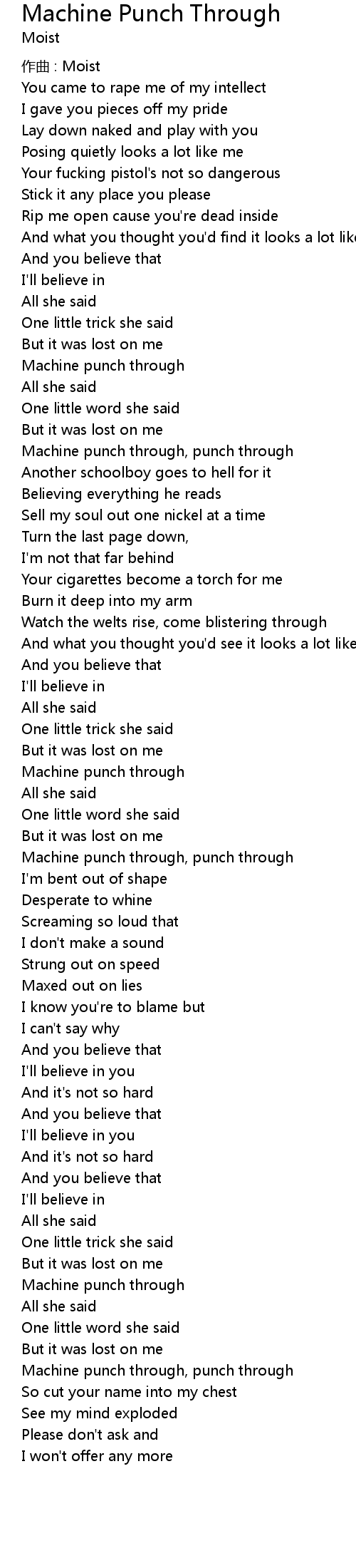 | 歌曲 | Machine Punch Through |