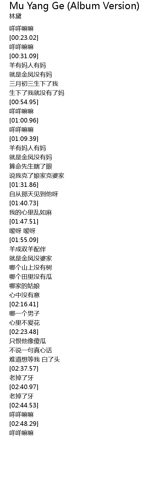 | 歌曲 | Mu Yang Ge (Album Version) |