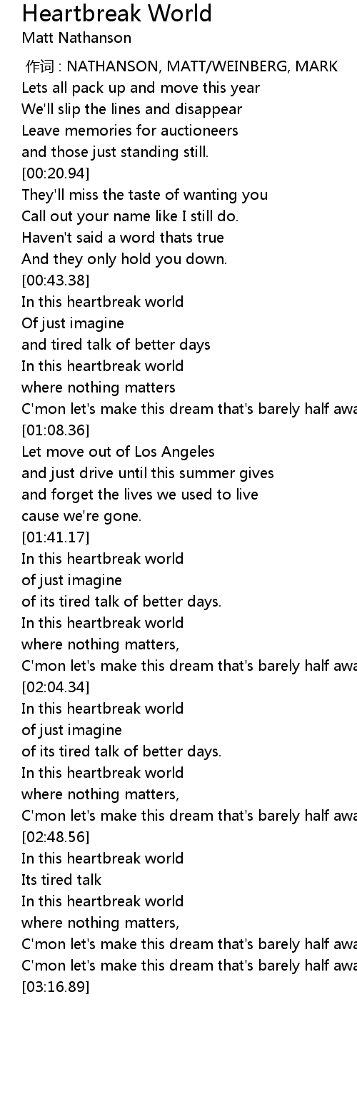 | [01:41.62] | In this heartbreak world |