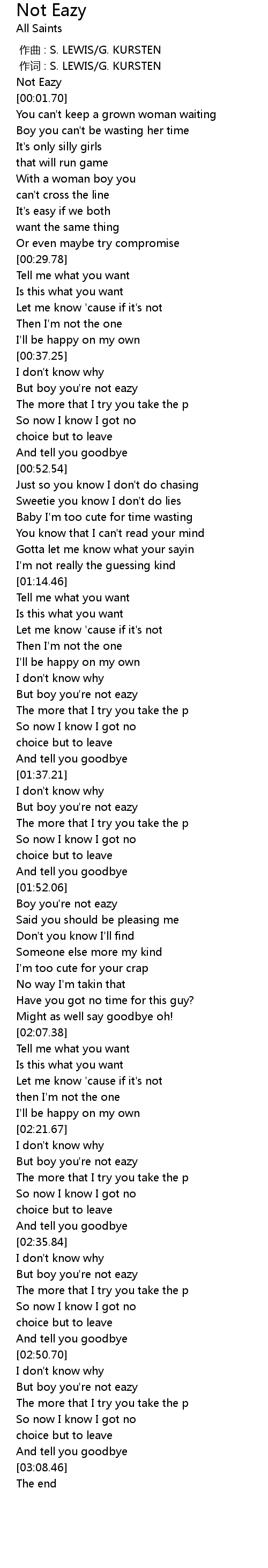 | [01:00.24] | Baby I' m too cute for time wasting |