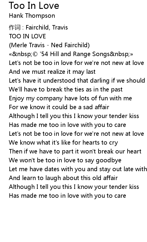| Let' s not be too in love for we' re not new at love | |