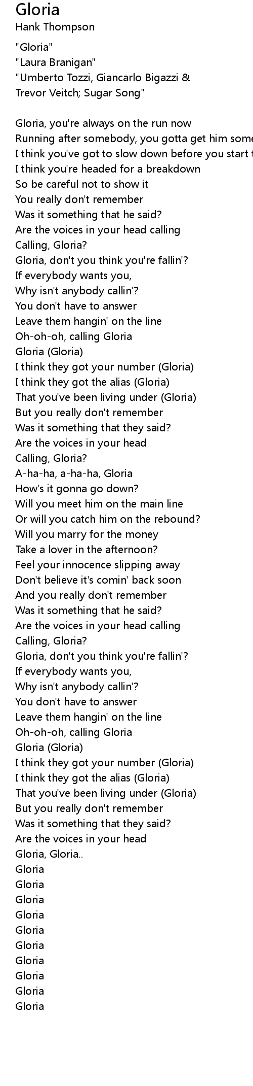 Gloria 歌词