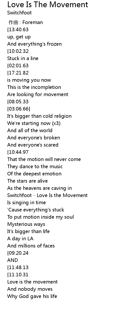 | [06:42.92] | Switchfoot Love Is the Movement |