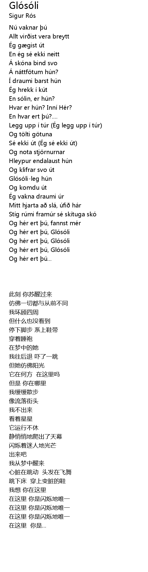 | [04:19.89] | Og hé r ert ú, Gló só li |