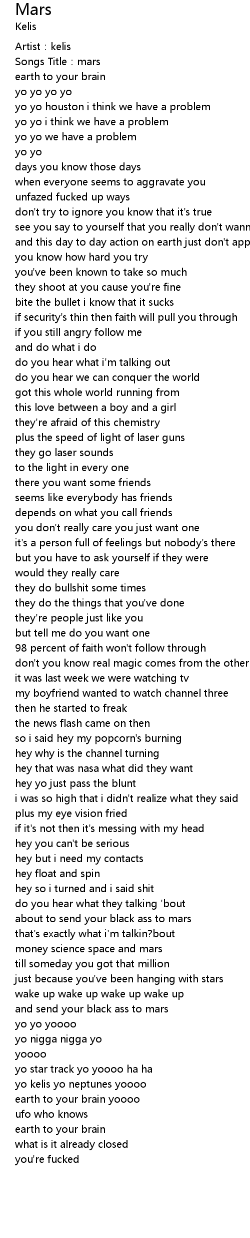 | [04:09.11] | and send your black ass to mars |