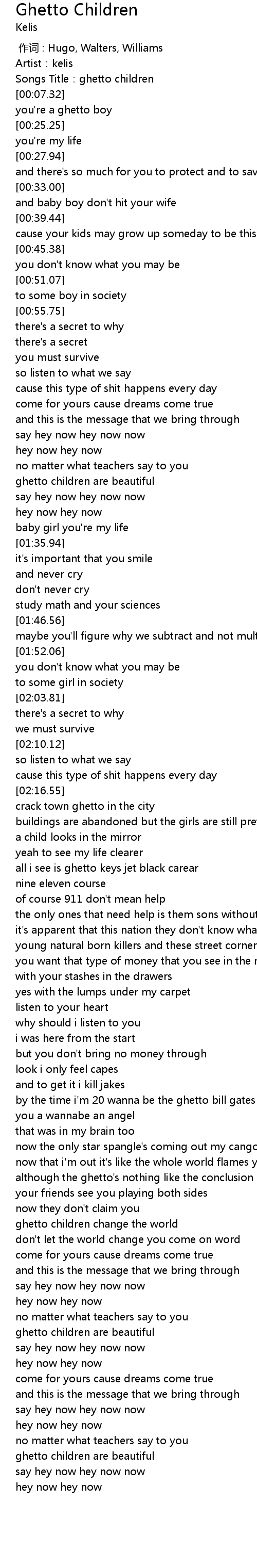 | [03:49.80] | ghetto children are beautiful |