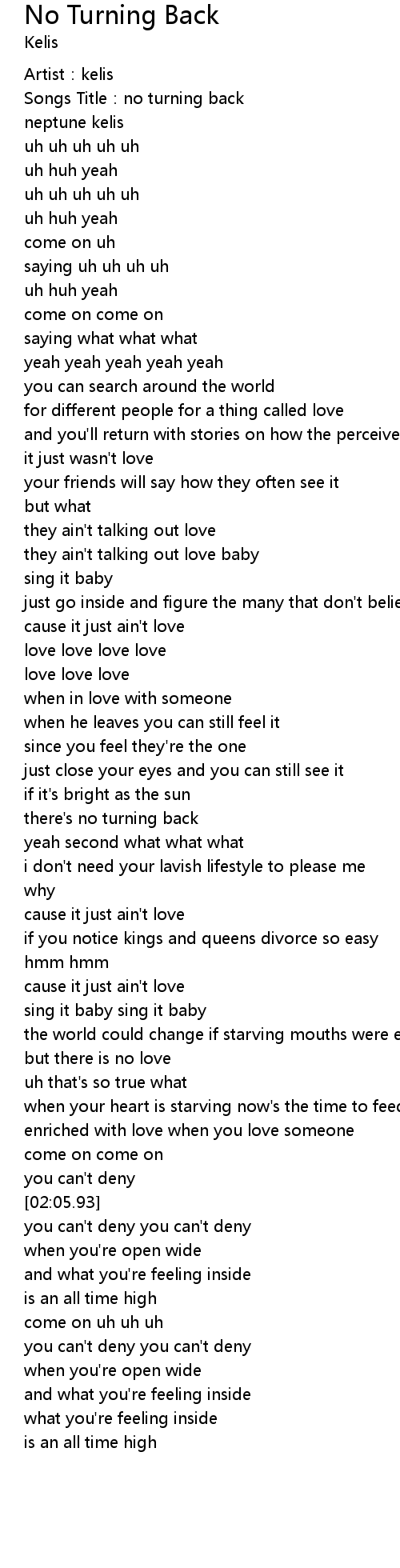 | [00:02.20] | Songs Title: no turning back |
