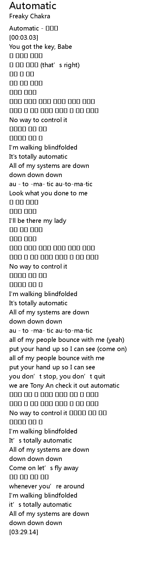 | [02:10.42] | au - to -ma- tic au-to-ma-tic |