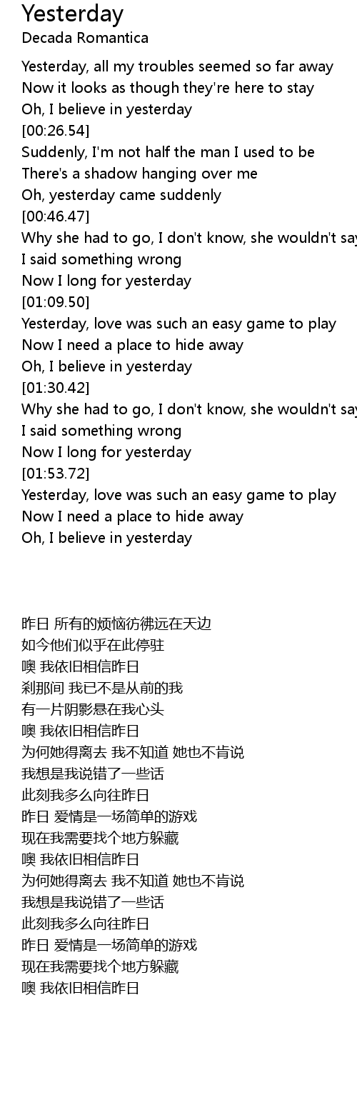 Yesterday, love was such an easy game to play |