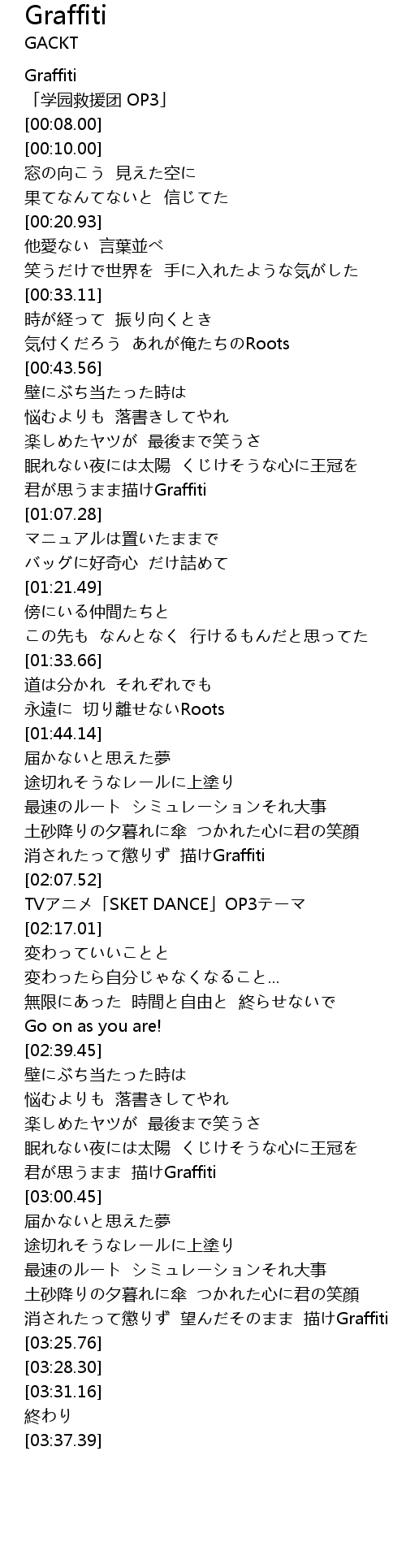 | [02:01.35] | 消されたって懲りず 描けGraffiti |