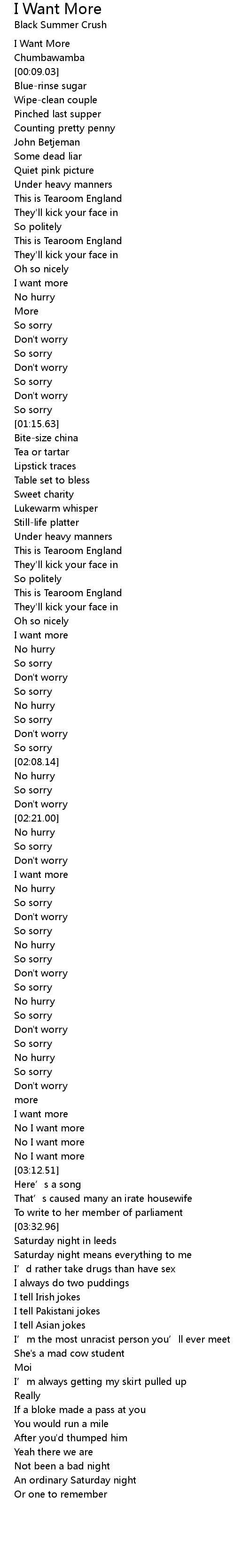 | [03:50.67] | I' m always getting my skirt pulled up |