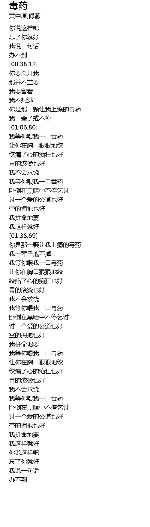 | [02:41.97] | wǒ děng nǐ wèi wǒ yī kǒu dú yào |