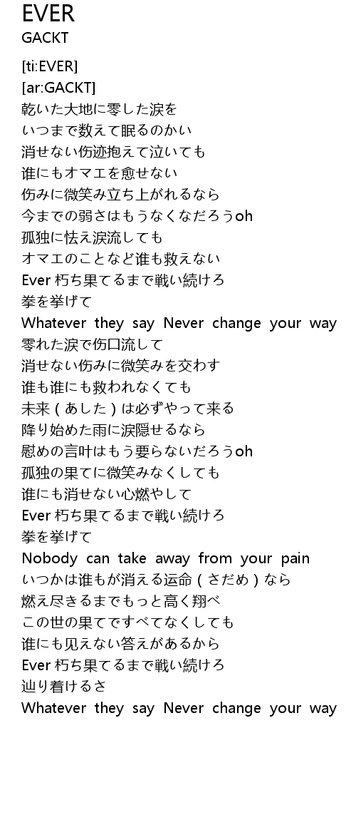 | [04:27.97] | Ever 朽ち果てるまで戦い続けろ |