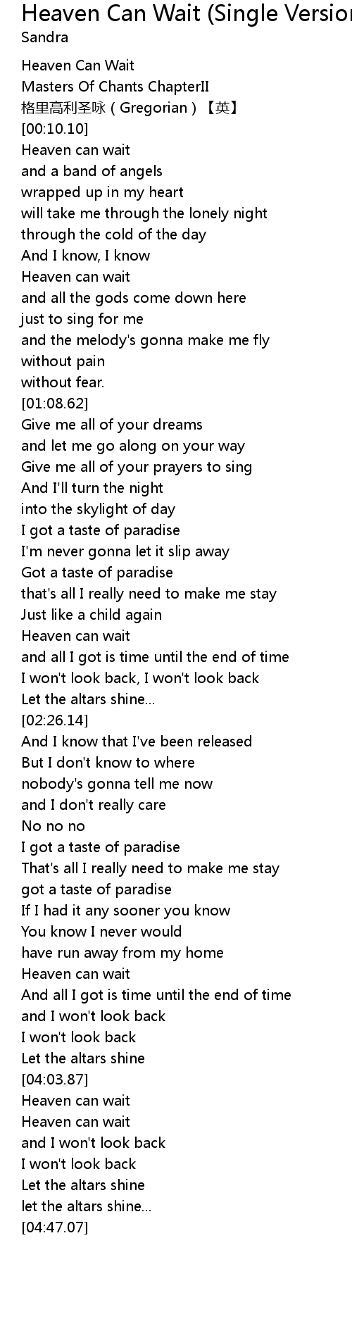 | 歌曲 | Heaven Can Wait (Single Version) |