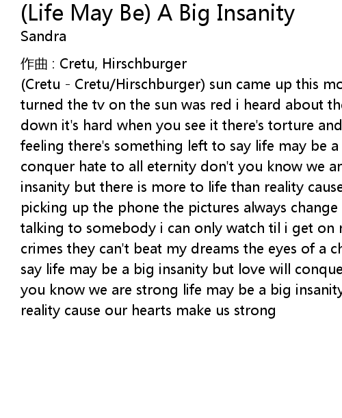 | 歌曲 | (Life May Be) A Big Insanity |
